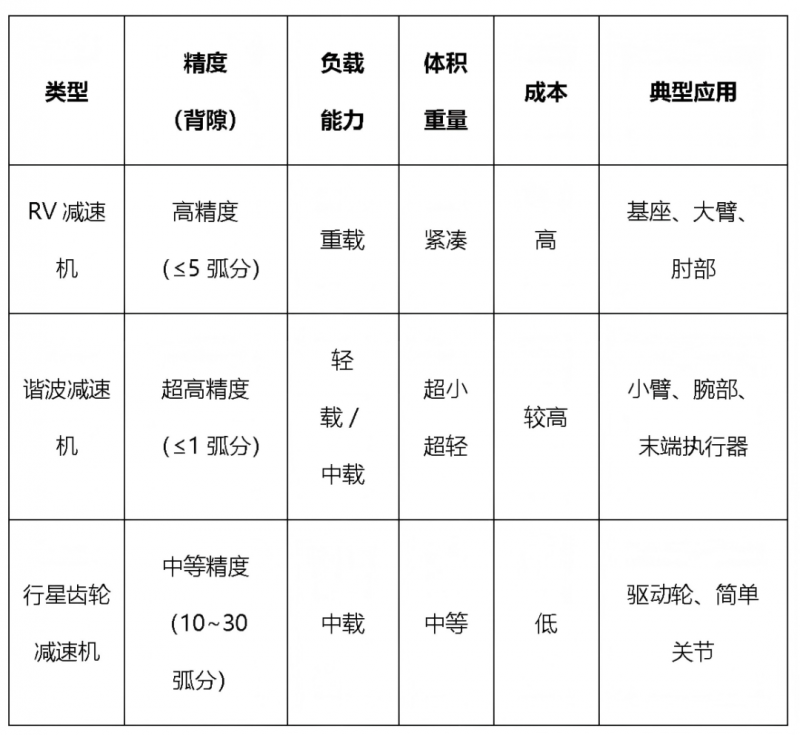 ▲ 不同类型减速机性能特点