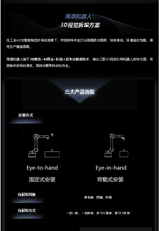 三款选择,精准匹配仓储物流全场景 | 海康机器人3D拆垛方案全新升级